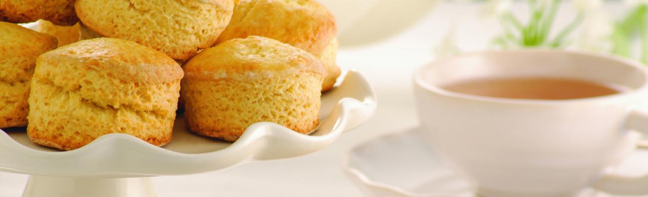 Pintar los scons con huevo batido y cocinarlos en horno caliente por 10 minutos aproximadamente. Retirar del horno, disponerlos en una fuente y servirlos.