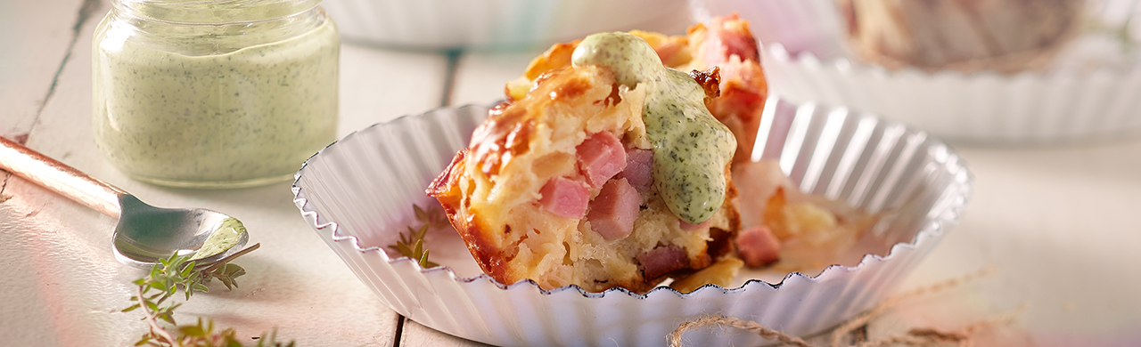 En un recipiente, colocar la harina leudante, el polvo de hornear, sal, pimienta y nuez moscada a gusto. Añadir las yemas alternando con el Aceite de Girasol Natura y las claras a nieve. Integrar bien, luego agregar el jamón cocido y el queso por salut.
